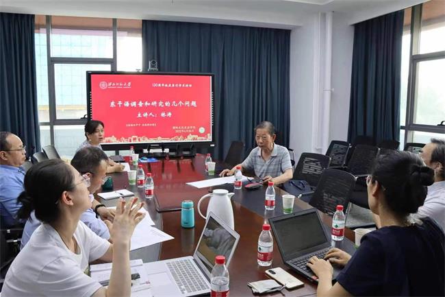 6月26日下午,应学院邀请,北方金年会体育在线登录林涛教授在文科实训楼406室作了题为《关于东干语调查及保护》的学术讲座,讲座由杨同军教授主持,学院教师、博士研究生30余人聆听讲座。