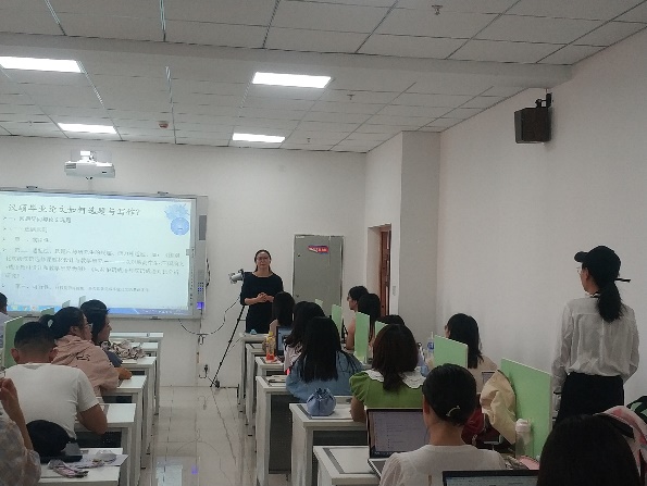 5月24日,应学院邀请,陕西师范大学国际汉学院吴媛副教授在文科实训楼404教室作了题为《谈谈汉语国际教育专业硕士毕业论文的选题与写作》的学术讲座,学院师生40余人聆听了讲座。
