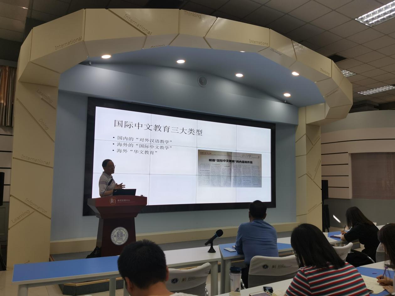 下午4时30分,郭熙教授在教师发展中心报告厅做了题《海外华文教育研究的新进展》的学术讲座,国际文化交流学院师生60余人聆听讲座。