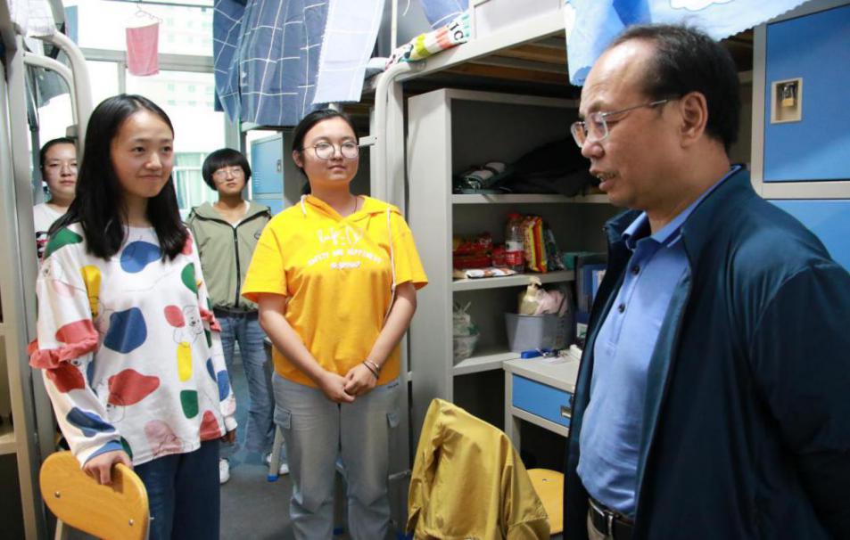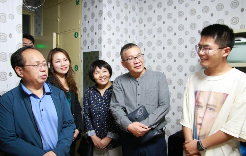 新学期伊始,为深入了解我院新生住宿情况,切实加强与新生之间的良好沟通,及时掌握并解决新生学习生活上的问题,9月10日晚,学院党委书记李东海,院长武和平,副院长李华,专职辅导员李芮一行前往兰天学生公寓以及党校学生公寓看望2020级新生。