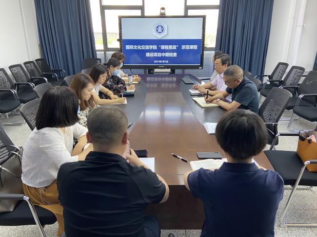 为全面贯彻教育部高等学校课程思政建设指导意见,落实学校2020年度立项“课程思政”示范课程建设项目中期检查工作部署,2021年7月1日上午,国际文化交流学院组织召开了“课程思政”示范课程建设项目中期检查会。会议由李华副院长主持,学院党委书记李东海、院长田河参加会议。