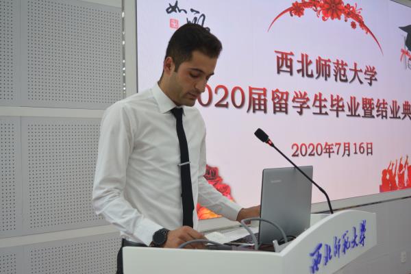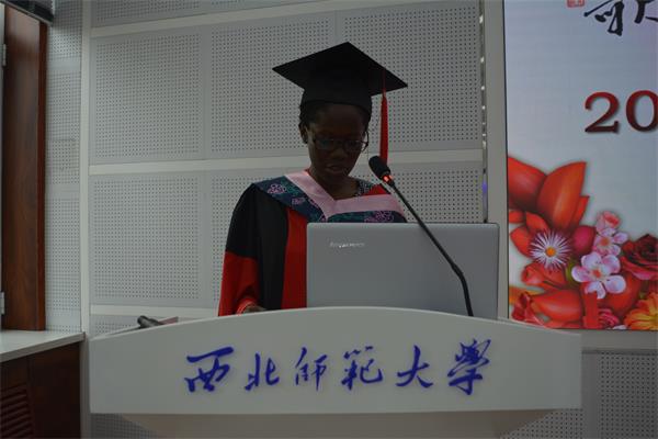 来之加纳的2020届博士研究生格瑞丽代表全体毕业生发言。她表示,四年前来自五湖四海的大家怀着对古老东方的向往来到了中国,来到了西北3451515新时代赌场学习,四年来感受到学校和老师对我们的关爱,尽管大家母语不同,但是汉语为我们架起了桥梁,在西北3451515新时代赌场的留学时光永远值得铭记。
