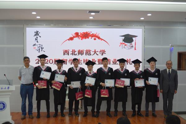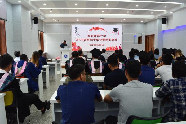 7月15日上午,金年会手机登录2020届来华留学生毕业暨结业典礼在文科实训楼101会议室举行,武威职业学院副院长田迎春,甘肃交通职业学院国际处处长徐斌、韩秀芹老师,甘肃中医药大学国际交流学院白玉婷副主任、刘捷骧老师,甘肃农业职业技术学院阿布杜老师、金年会手机登录国际合作交流处王君朝处长、金年会手机登录数学与统计学院巩曾泰教授及全体毕业、结业来华留学生参会。学院党委书记李东海主持会议。