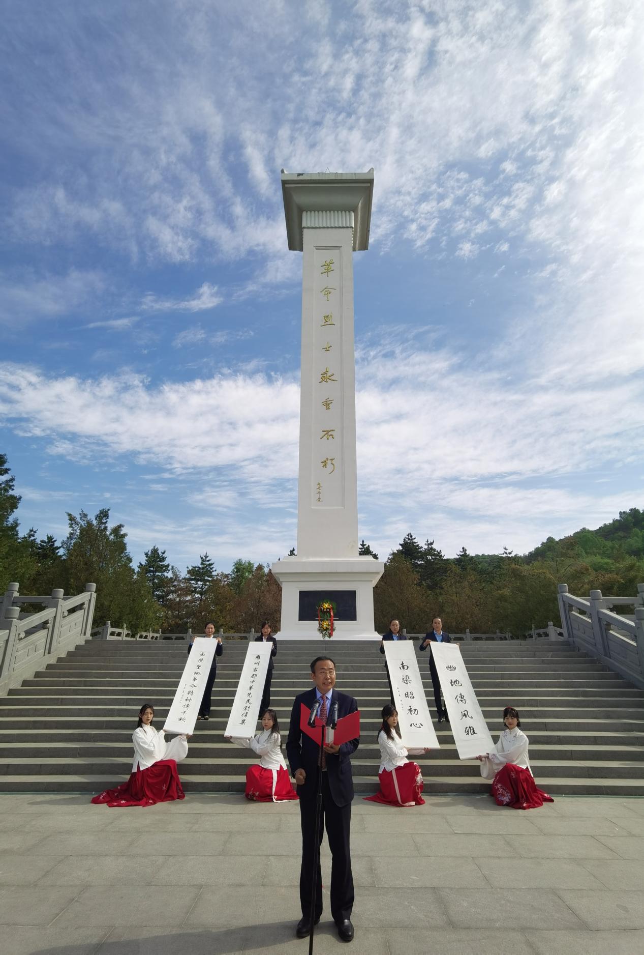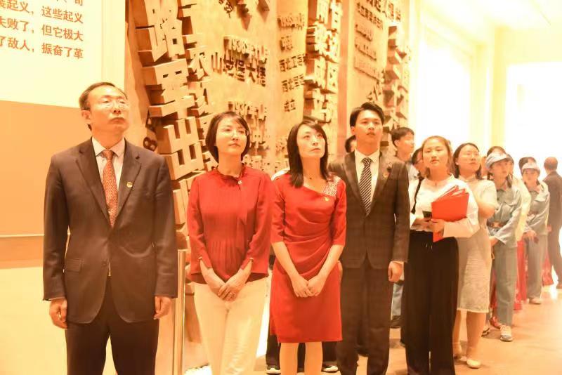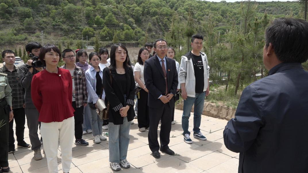 5月21日上午,团队一行前往南梁革命纪念馆。在南梁革命烈士纪念碑前,党员向烈士敬献花篮,开展了经典诵读活动,用《永不消逝的声音》《黄河颂》《读中国》等朗诵节目向革命先烈和这片红色热土致敬。随后,师生党员跟随讲解员参观了纪念馆、翻看了革命先辈曾经战斗的历史画卷、接受了一次深刻的爱国主义教育和党史革命教育,大家切身学习了了刘志丹、谢子长、习仲勋等革命先辈的光荣事迹,体会到了“南梁精神”是如何印刻在中国红色革命的光辉历程中的。
