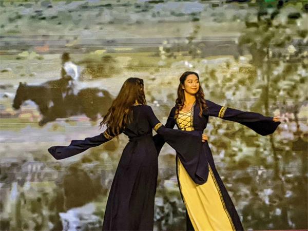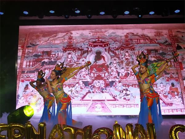 铁马秋风、星河万顷,敦煌曾是中外文化交汇的圣地,丝绸之路上明珠。吉尔吉斯坦黄莺、苏丹戴娜娜等留学生表演的古典舞《一梦敦煌》更是将时光轴再往前回溯千年。反弹琵琶的造型、婀娜多变的舞姿,将千年前敦煌多元文化交融的特点展现得淋漓尽致。