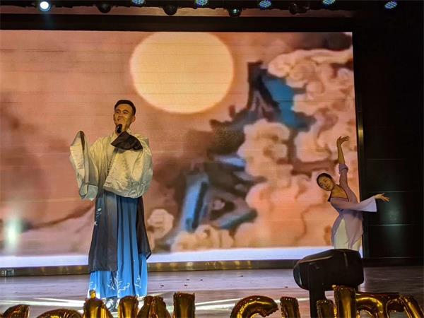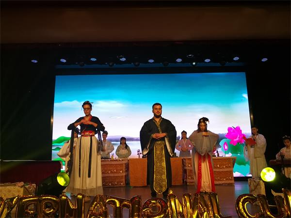 由哈萨克斯坦、吉尔吉斯斯坦、中国的马嘉诚、李雪娇等同学带来的诗朗诵《古今对话》更是情感饱满,在举手投足间都传达着留学生们对中国古今名诗名篇的喜爱。
