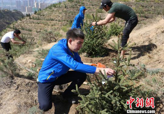 5月12日,金年会手机登录2017届东干族留学生在母校北山上种植“毕业纪念林”,表达他们对兰州的不舍,对母校的感恩,也为他们在中国本科学习生涯画上圆满的句号。这些“95后”东干族留学生来自哈萨克斯坦、吉尔吉斯斯坦等国家。当天他们和老师一起挖坑、栽树、浇水,共栽植50棵树,并将自己的姓名、国籍写在卡片上,挂到自己栽种的树上,以这种特殊的方式纪念他们的青春岁月,以及留下他们对中国的思念。