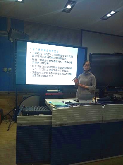 张颖副教授的报告题目为《东干子弟语言使用调查报告》,共包含东干族简介、东干语介绍、东干生语言背景、调查对象基本情况语言使用情况等六个方面。其中在语言使用情况调查中,张颖副教授从四个方面进行考查:一,东干生母语或第一语言使用情况;二,汉语使用情况;三,俄语使用情况;四,其他语言使用情况。同时在问卷设计中充分考虑了东干生的性别、国籍、年龄以及汉语学习时长,以求能得到一个相对准确有效的调查结果。