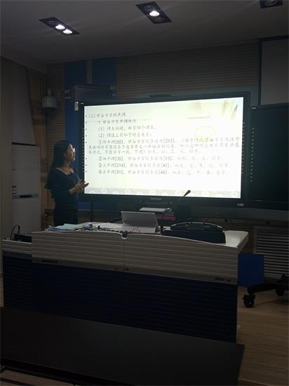 2016级汉硕周蕾同学对她的课题《认知角度下的东干口传文学中的动物隐喻研究——以〈奶奶的古今儿〉为例》,在报告过程中,她运用概念隐喻理论对老虎、狼、猫、狗等形象所表示的隐喻义进行了形象生动的阐述;2017级汉硕张莉同学主要从甘谷方言的声母、韵母、声调方面对《甘谷方言的语音特点》这一课题展开了深入浅出的讲解。