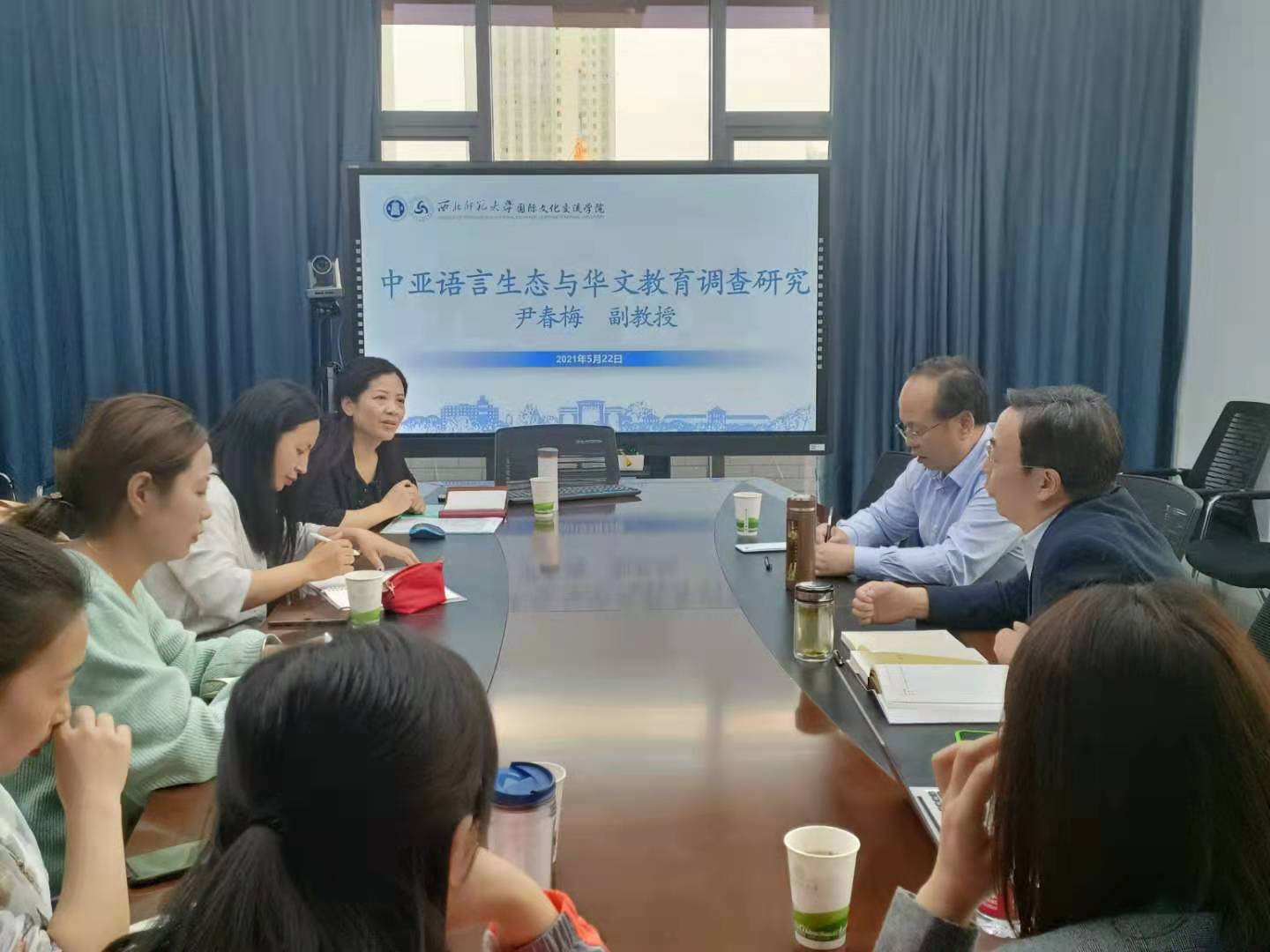 5月22日上午,尹春梅副教授与学院师生开展了“中亚语言生态与华文教育调查研究”为题的座谈,与学院师生共同交流学习。