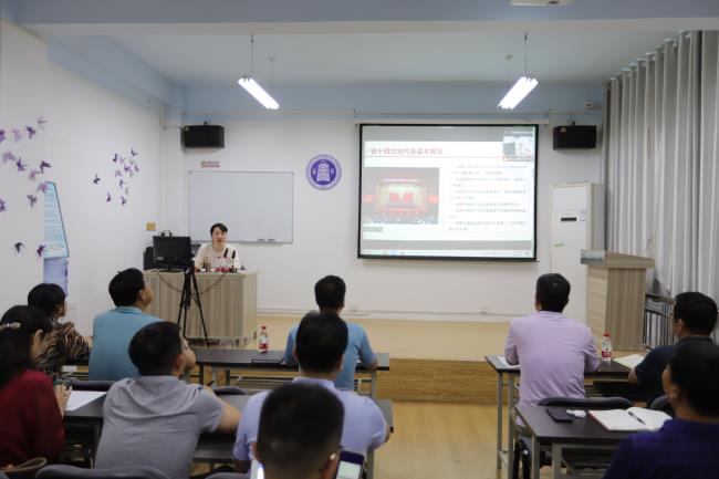 为深入学习贯彻中国共产党甘肃省第十四次党代会精神,77日下午,在教学3号楼806会议室,马克思主义学院教师韩璐博士为国际文化交流学院、外国语学院、体育学院、教育技术学院的师生共同作了主题为“奋进新征程,建功新时代—暨甘肃省第十四次党代会精神”宣讲报告。学院领导班子成员、党委委员、党支部书记和师生党员代表共计100余人,以线上线下结合的方式聆听了此次报告会。