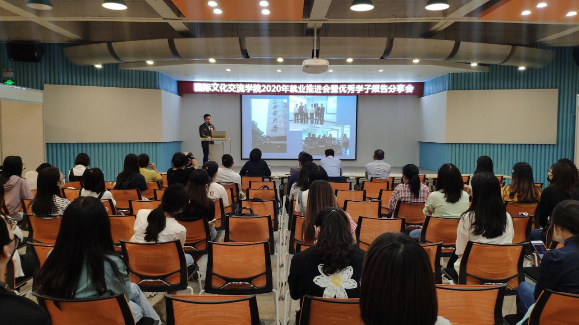 为进一步做好学生就业指导服务工作,促进学生高质量就业,国际文化交流学院于6月19日举办了2020年就业推进会暨优秀学子报告分享会,优秀学子代表分享了各自在创业、就业、升学方面的经验。学院党委书记李东海,院长武和平,副院长杨同军、李华,班主任、辅导员及2017级本科生、2018级硕士研究生参加了会议。