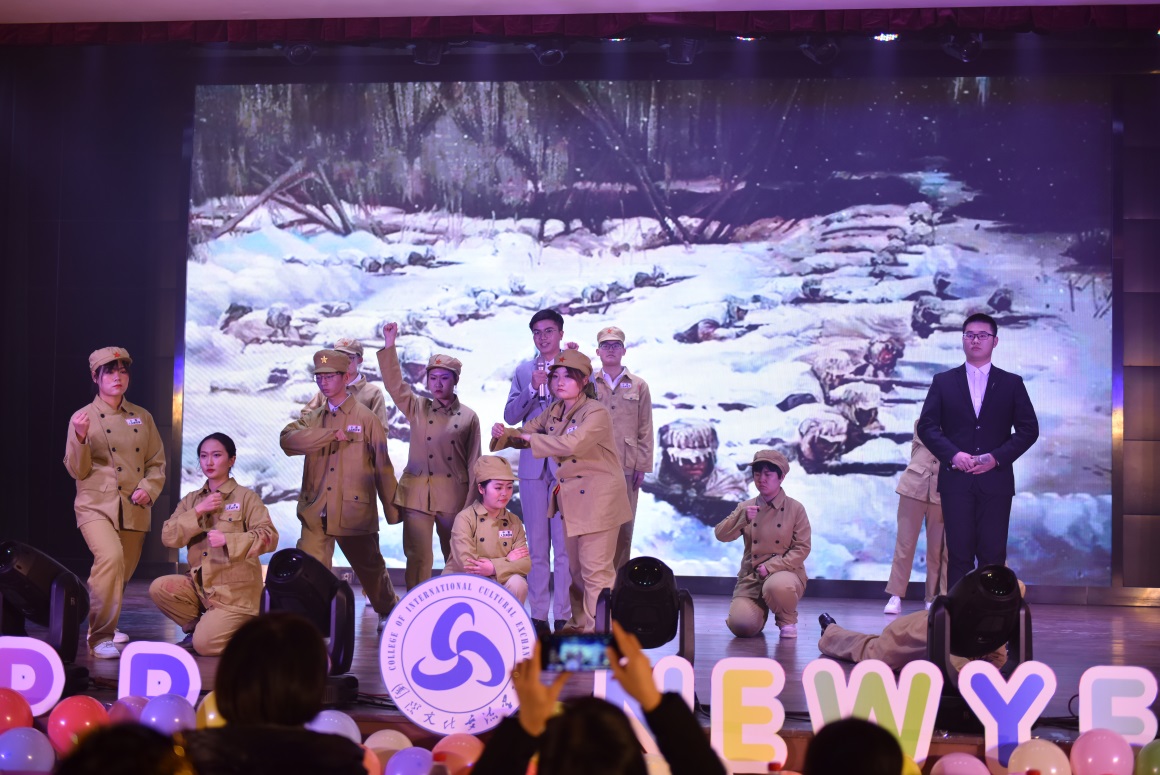 1227日晚,国际文化交流学院第十二届国际文化交流节暨2020年迎新表彰会在学生发展中心成功举办。晚会通过歌曲、朗诵、舞蹈、相声、服装秀等多种艺术表现形式,充分展现了学院师生的风采。学院党委书记李东海,副院长李华、田河及学院350余名师生欢聚一堂,共迎新年。