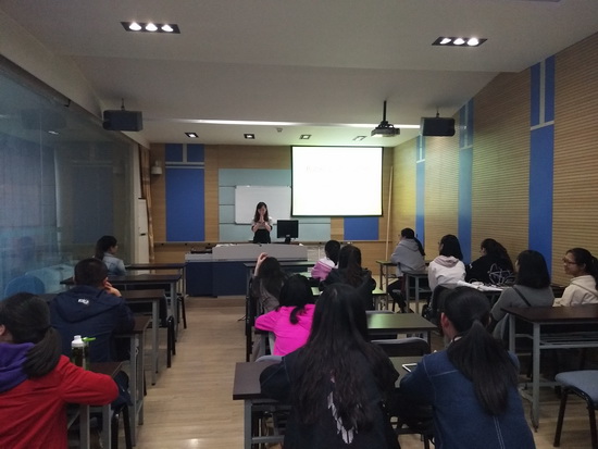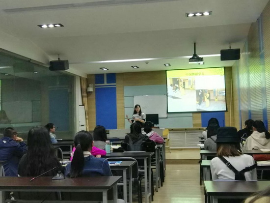 4月26日下午,学院2017年研究生学术月系列活动“传语授文--时光泰然”志愿者赴泰报告会在10 B618室举行,2015级研究生马榕分享了她赴泰国从事汉语志愿者的经历,学院三、四年级本科生及研究生50余人参加报告会。